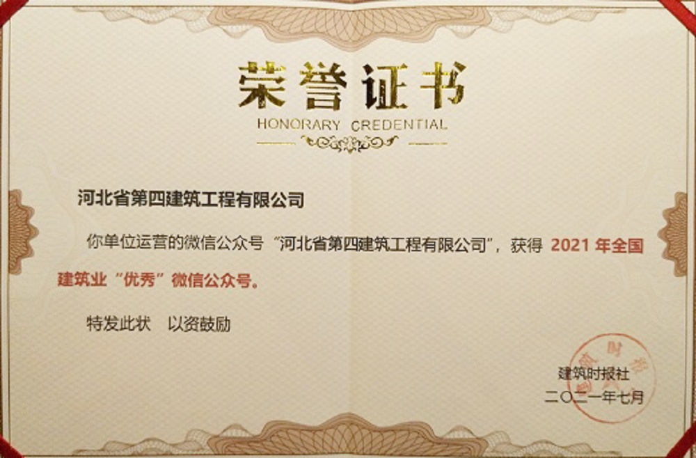 河北四建:工程建设行业党建工作示范单位